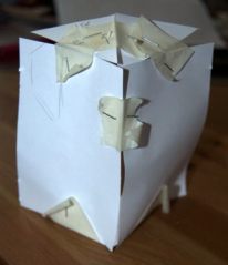 Here is my engineering prototype for the finished item. It’ll consist of etched copper plates held together with leather.