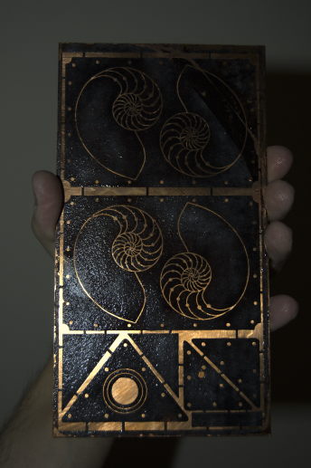 Here is my engineering prototype for the finished item. It’ll consist of etched copper plates held together with leather.