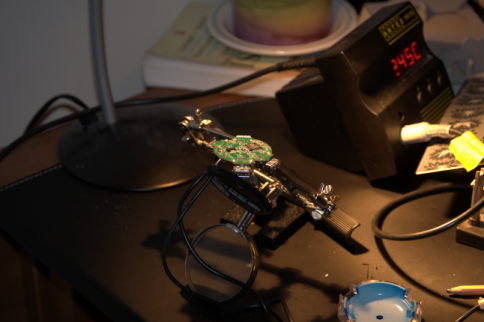 Here are some pictures. My workspace where I’m resoldering the cables to the USB hub: