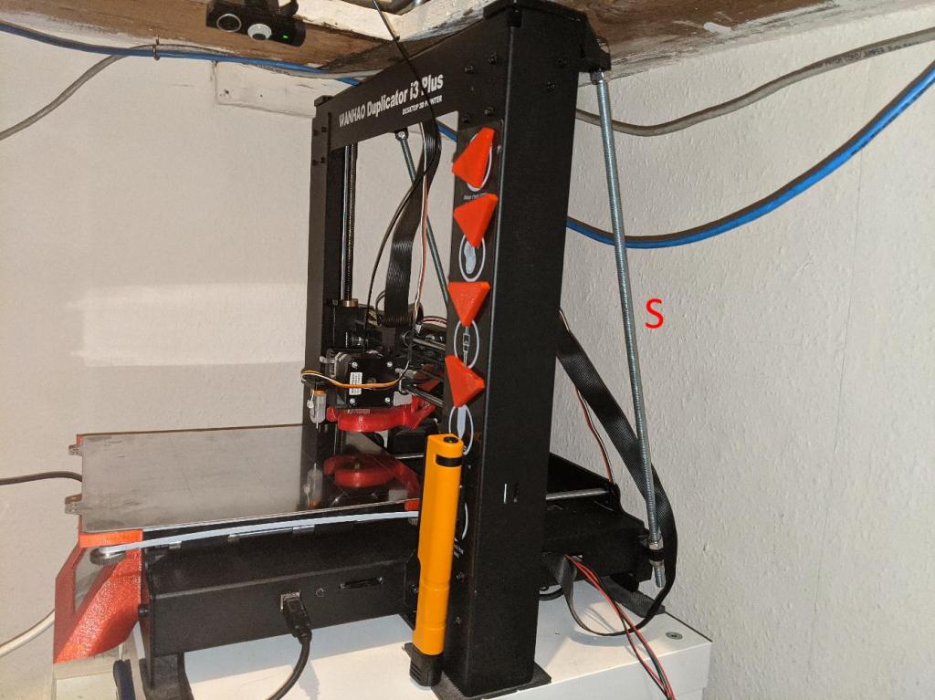 - Z Brace. The printer has a horizontal and a vertical piece as shown in the picture to the right. Unfortunately the vertical piece tends to wobble a bit, causing distortion when printing. To remedy this, I printed this rear z-axis support, and installed it with some M8 threaded bars and M8 Nyloc nuts (all labelled S in the picture).