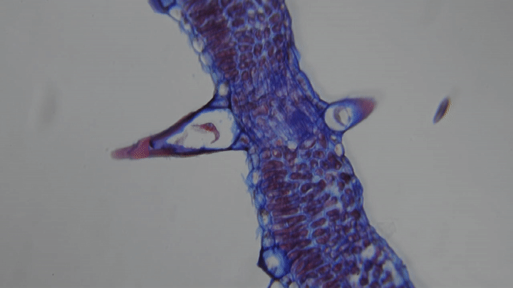 (Video of Angiospermae Urtica – T. S. Leaf Stinging Hairs at 40X)
