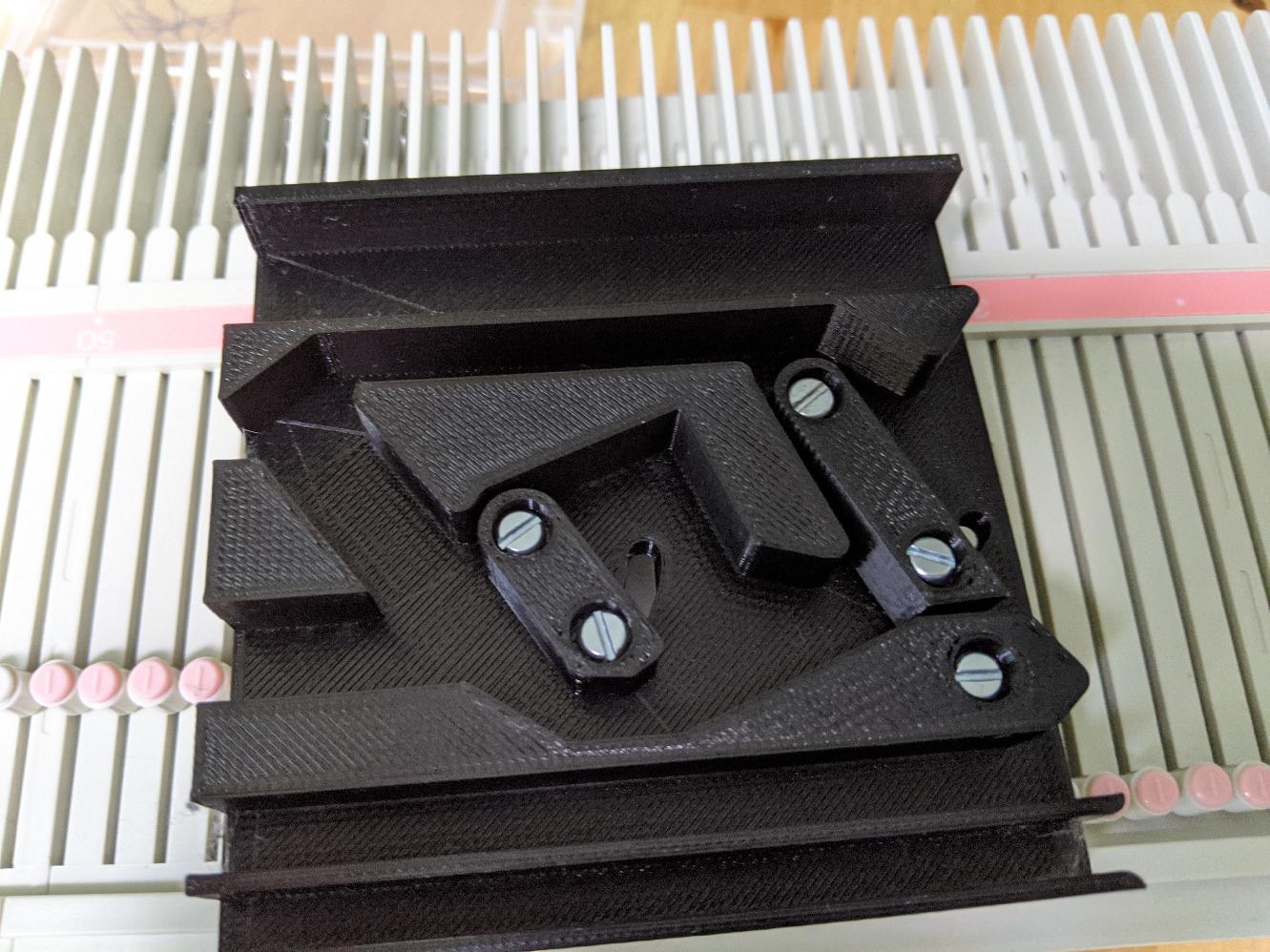 - B. I’ve left a small indent in the path the needles take, and they tend to get stuck in there. This is the reason the “return pass” in my video jams. Solution: reposition things to eliminate this indent. (I’ve already tested this hypothesis with a piece of sticky tape over the gap, and its a lot better).