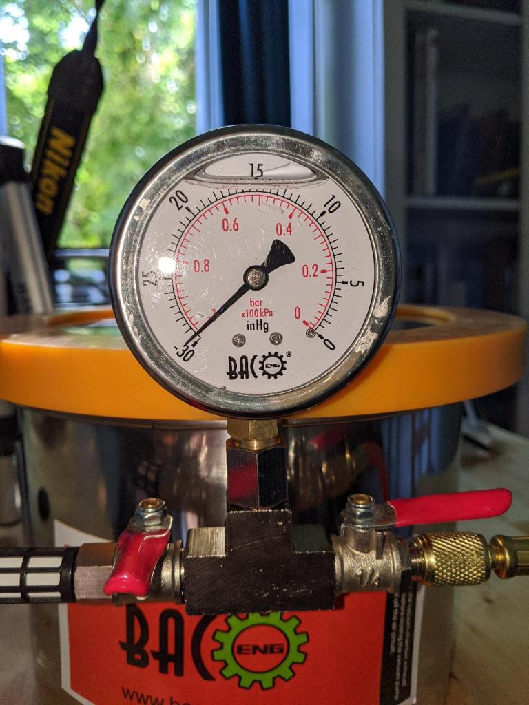 It was a little unclear on what to do for the pressure gauge from the instruction sticker on it: apparently, its meant to measure the pressure in the chamber relative to your local pressure. It is not supposed to be completely sealed. I figured out what they probably meant was simply to puncture the rubber seal on the gauge with a pin.