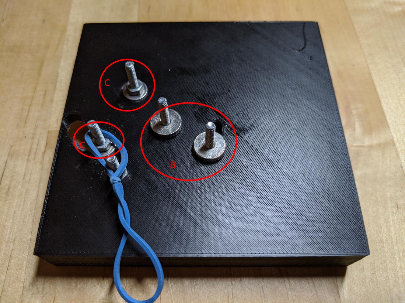 - D: Moved the static bolt to a better position. I tried using a spring, but it was way too strong so I’m just using an elastic band now.