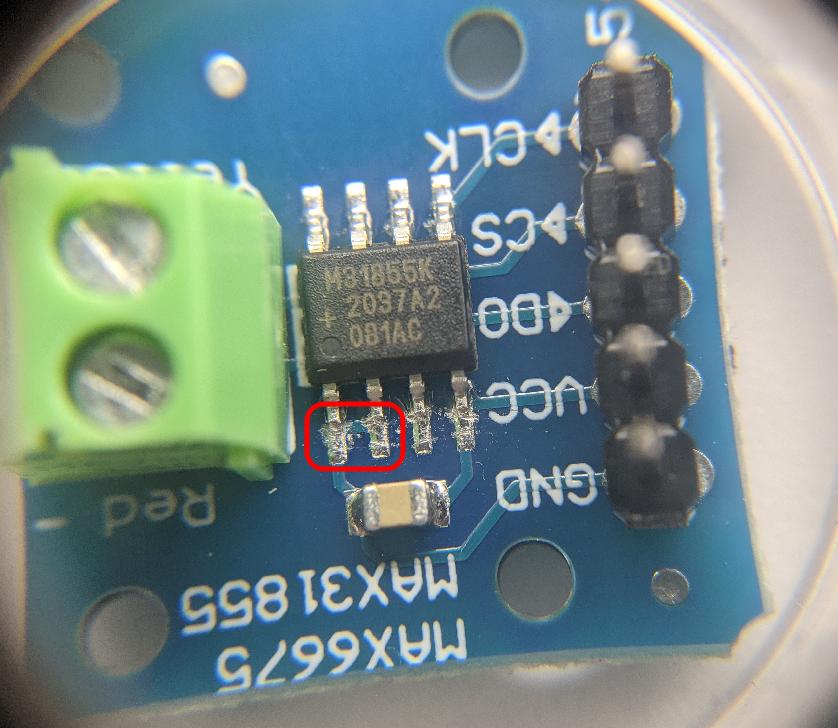 I could just cut the trace, but I don’t trust this board at all now: its ripe for defenestration. I’ve ordered a somewhat more expensive MAX31855 board from a more reputable supplier.