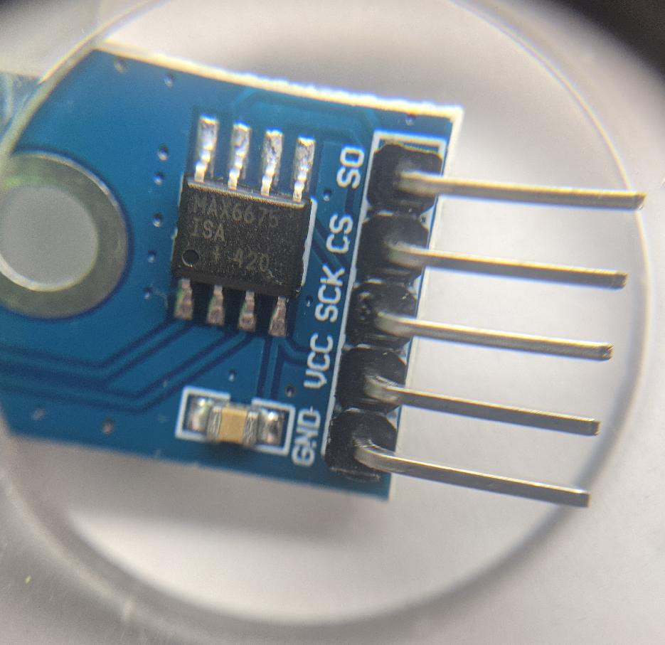 Its basically just a couple of funny pieces of wire though: you need a thing to turn that into a temperature reading. Enter the MAX6675: