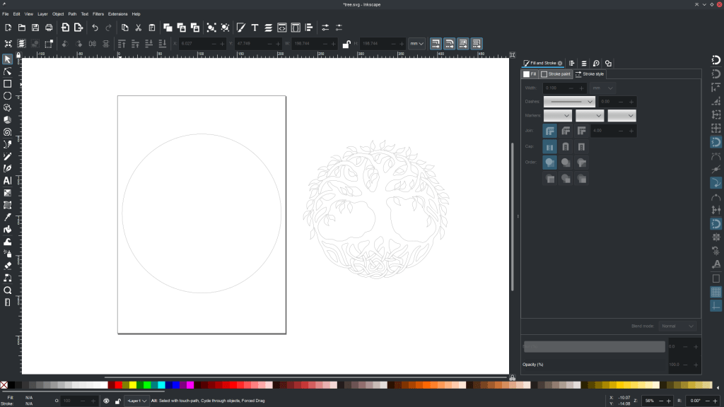 Then I started messing with Inkscape. I found a celtic tree design on the Internet to use as a quick test.