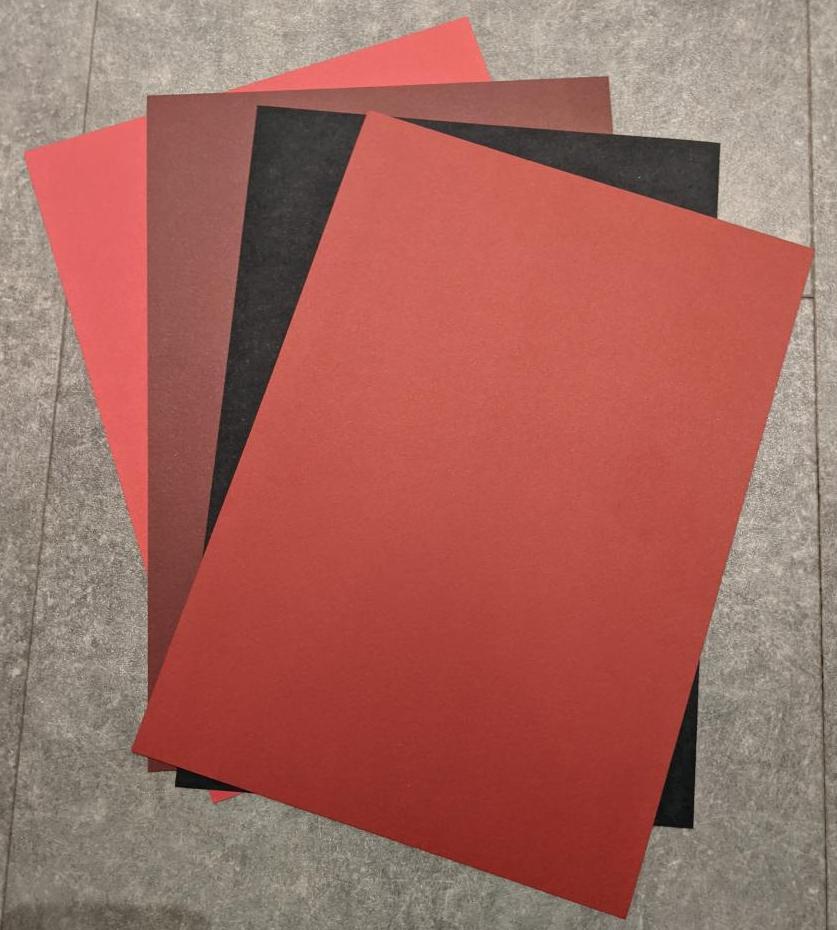 I split my new vector file up into layers so I could the colours of layers easily and started playing around (and checking what card I had available). I eventually ended up with a selection of reds and blacks as follows: