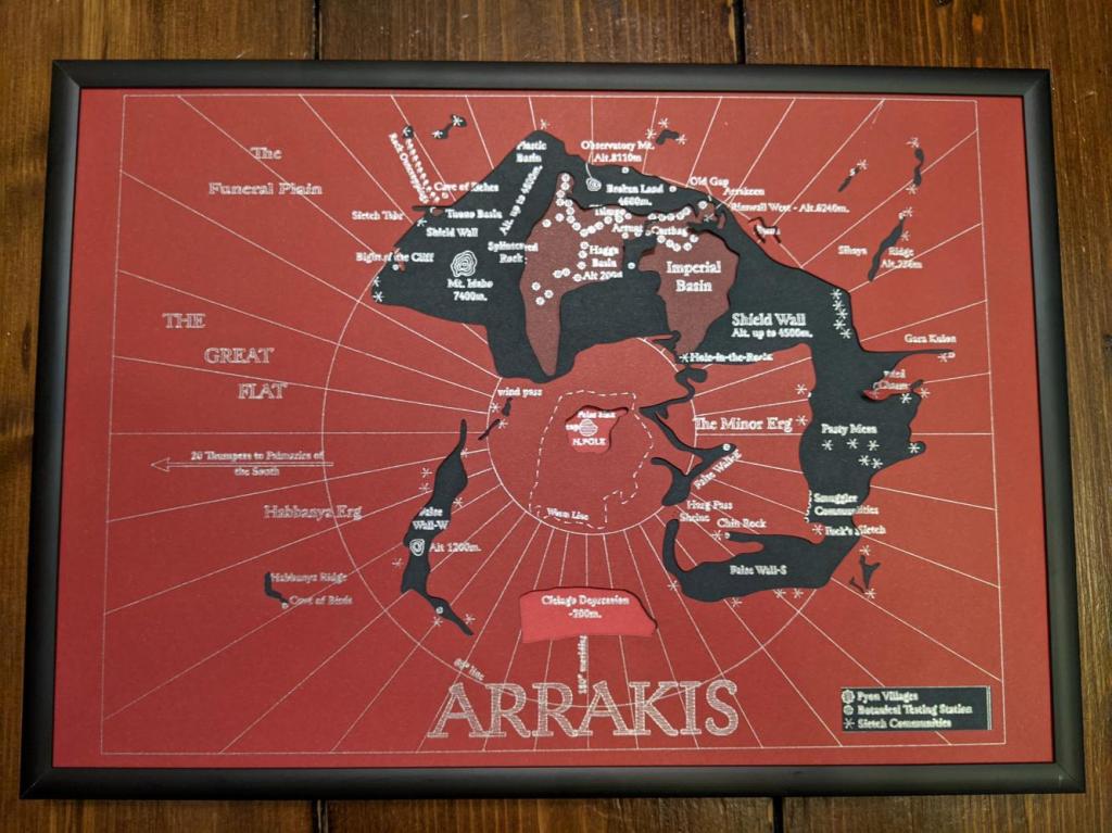 For my next project I wanted something more complicated. As the new Dune film is out, and I’m a total Dune fan, I thought a map of Arrakis would be pretty cool.