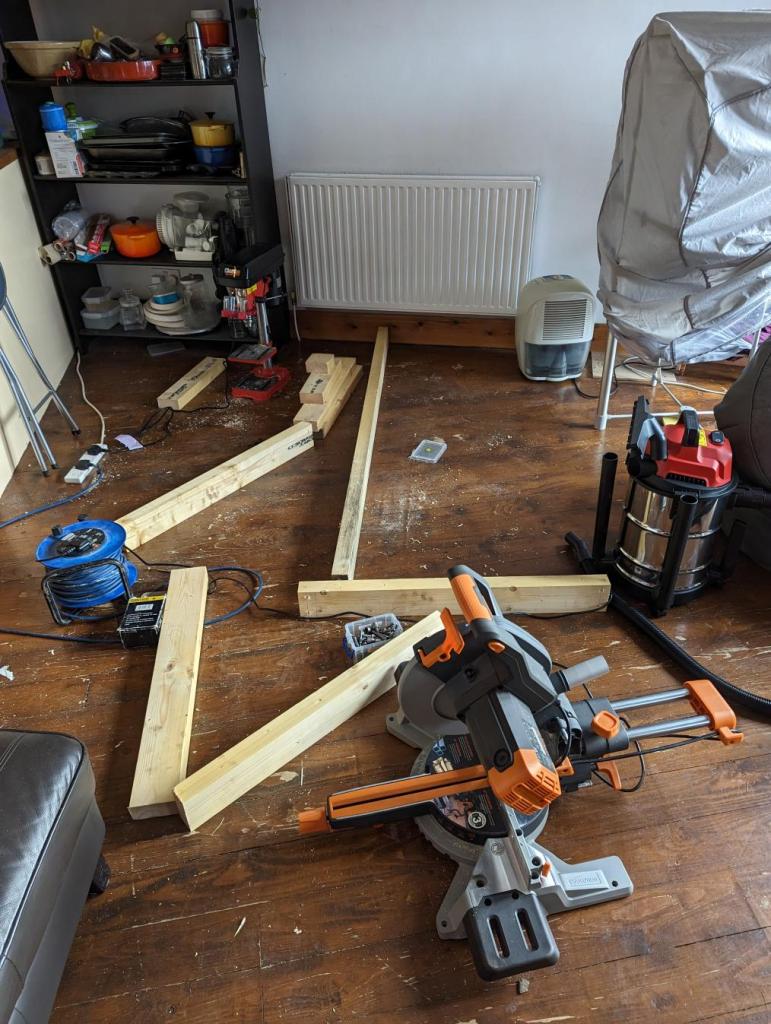 - I ordered C24 95mmx45mm “2×4” construction timber, a sheet of OSB and a sheet of plywood from Thistle Building Supplies: seemed cheap, what I wanted and the delivery guy was friendly.