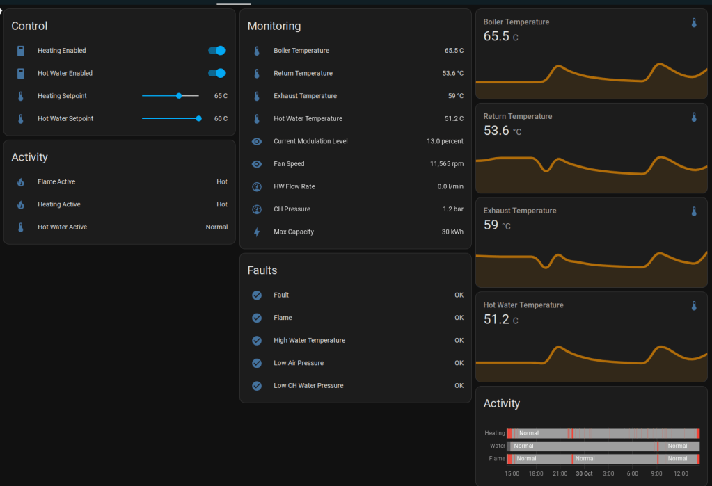 I then built this fancy dashboard on home assistant to monitor the boiler: